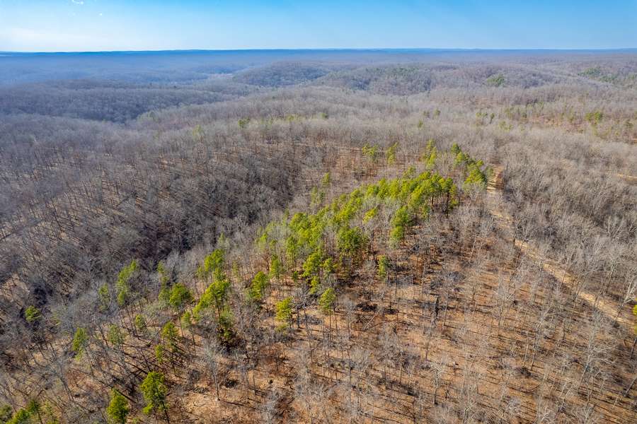 Escape to your own off-grid retreat on 80+/- secluded acres intended for privacy, recreation, and exciting outdoor experiences. Tucked nearly nine miles down a quiet county road, this remote property offers the ability to truly get off-grid and away from it all. On top of being extremely remote, this fully timbered tract features great deer and turkey hunting opportunities in a peaceful setting. The location places it right between two major water sources for migrating wildlife. The mix of oaks and pines provide an abundant food source along with the valleys and draws sure to provide for some great ambush points too. With direct access to National Forest land on the west side the future owners will have thousands of additional acres to explore.