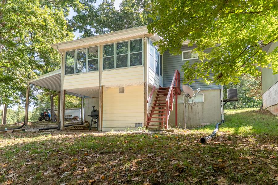 Welcome to 13447 Apache Point Dr. Ste. Genevieve! Lake development living at a great price. This cute ranch offers comfort and charm with the resort lifestyle. This home features two bedrooms and 1.5 baths with a full unfinished basement to finish as you wish or leave it unfinished for storage. The sloped lot offers a ground level front entrance with a walk-out basement. A great sunporch off the kitchen and dining area across the back of the home is a wonderful place to relax after a day of work or play. There is covered parking and a small storage building.