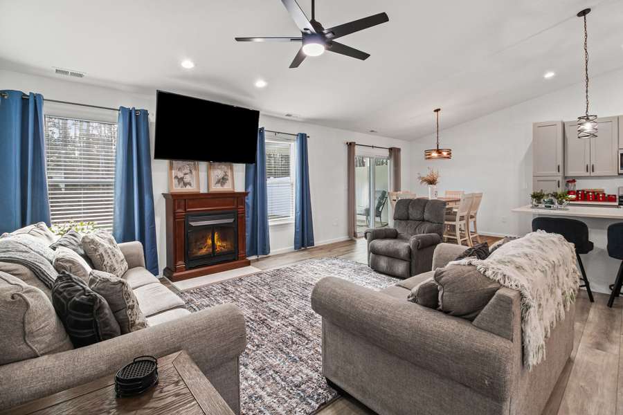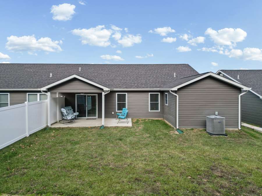 Welcome home to 1539 Hickory Landing, a beautiful ranch-style Villa built in 2024. This 3-bedroom, 2-bath home features a desirable open floor plan with stylish quartz countertops and a large center island perfect for entertaining. The living room is highlighted by a cozy gas fireplace, creating a warm and inviting space. You’ll love the abundance of storage throughout the home and the convenience of one-level living. Step outside to enjoy the covered patio with a level, partially fenced backyard! Modern finishes, functional layout, and move-in ready convenience make this home a must see! Showings start 12-10-25.