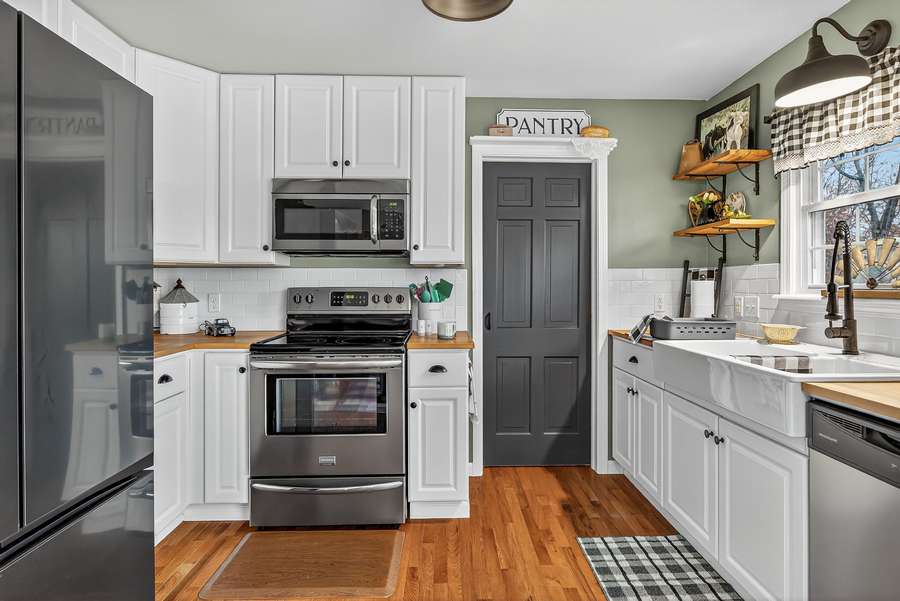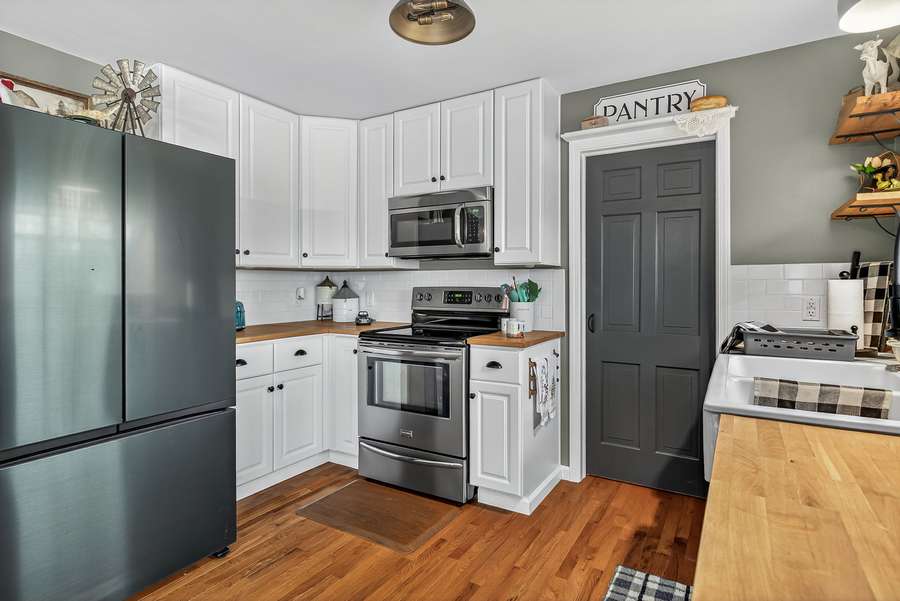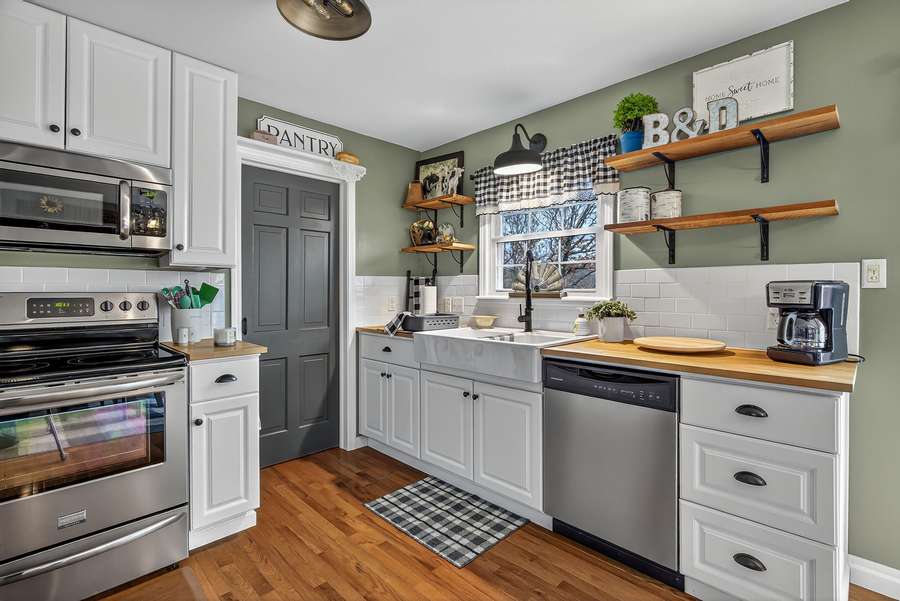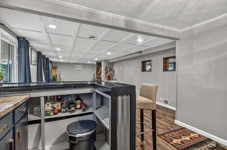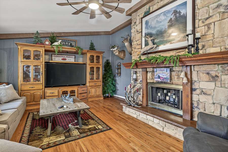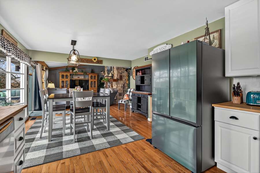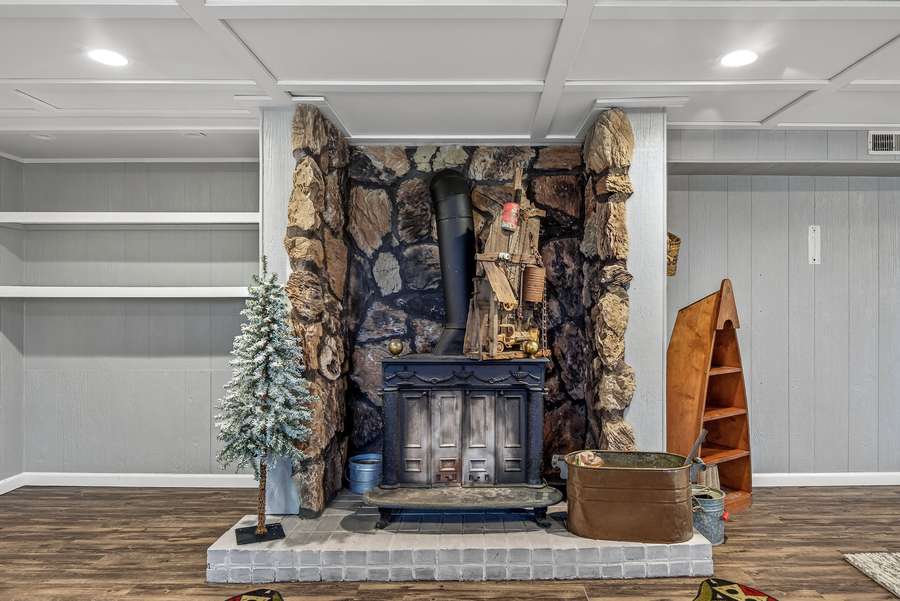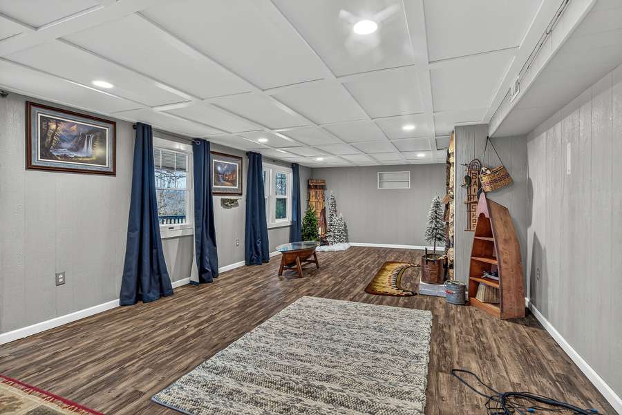 The walk-out lower level offers even more space to relax and entertain, including a bedroom and full bath—perfect for adult children or weekend guests. The spacious lower-level family room, complete with a wood-burning stove, creates a warm and inviting atmosphere whether you're unwinding, working from home, or hosting gatherings.
