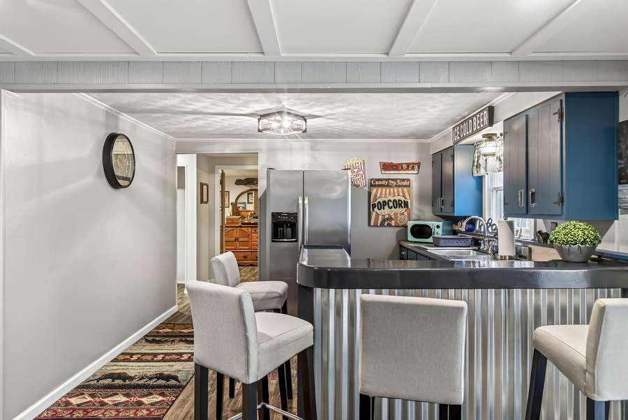 It also includes a convenient kitchenette/bar area, ideal for entertaining or for easy access while grilling on the covered patio that spans the length of the home.