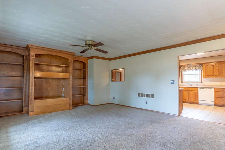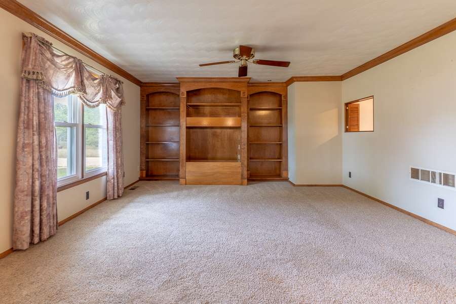 There is also a beautiful brick ranch home in great condition, featuring a new roof and updated windows. Built with pride, literally brick by brick. And a bonus wood-burning/electric furnace (your choice). Enter a large living room space with built-in bookshelves, crown molding, and meticulous attention to detail everywhere you look. Large eat-in kitchen with double ovens and cooktop, with the laundry room right off the kitchen in a huge separate space also used at one time as a sewing room. From there, walk into a huge sunroom, or another door takes you to a mudroom/sun porch that leads into a 2-car oversized garage. Down the hall, you will find 3 bedrooms and 2 full bathrooms.
