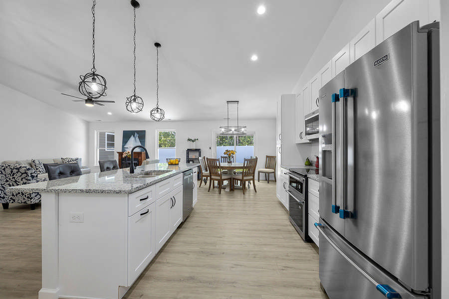 This is the newest development within city limits, and it is a great opportunity to own a brand-new home. Open floor plan with a large living room, vaulted ceiling. Custom cabinets and granite countertop, main floor laundry, master bedroom suite with double sinks and a huge walk-in closet. 2 car garage (22x22) covered patio that backs up to woods. This natural setting is very peaceful and quiet. We hope to see you soon! This list price includes upgrades, and this villa has a full walk out finished basement.