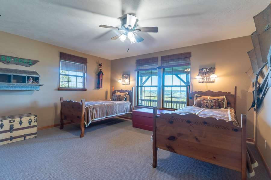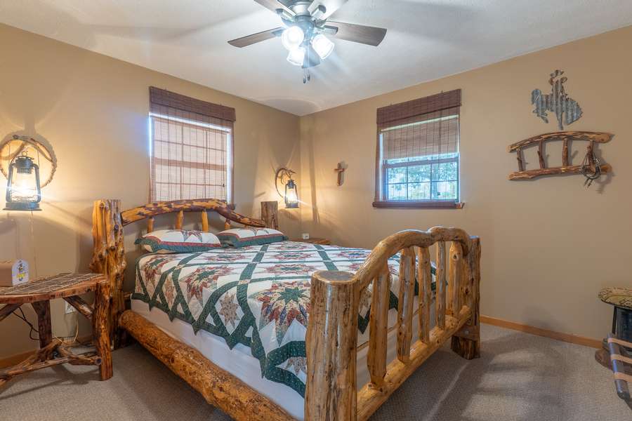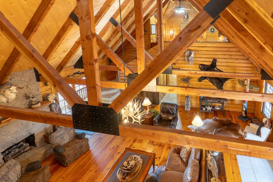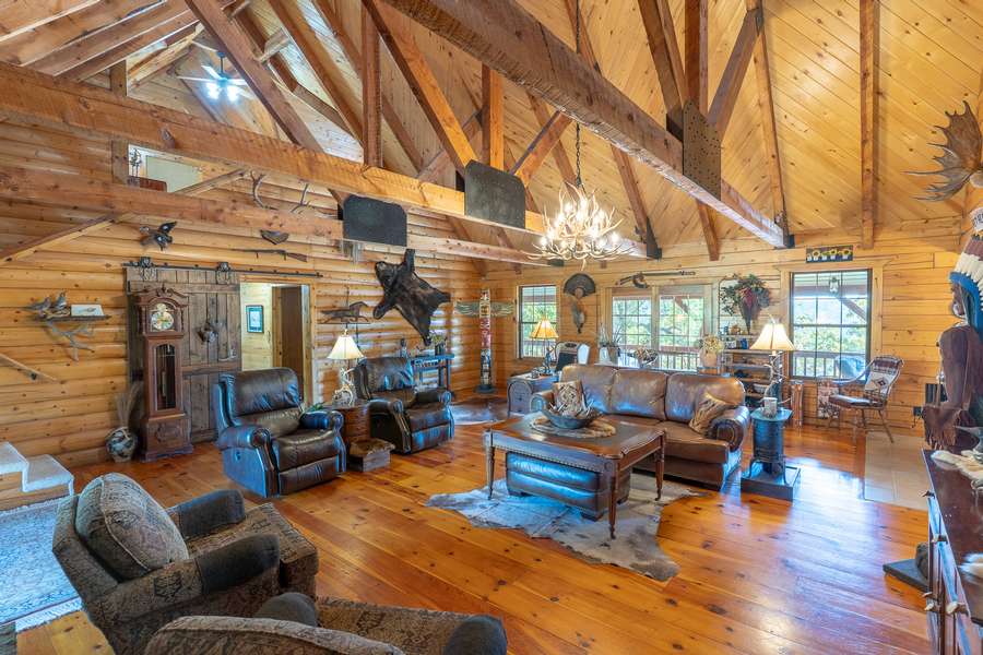 Central to the property is a beautiful Log Home with a lodge-like presence consisting of a split loft design with a total of 4 bedrooms, 4 baths, a spacious living area, kitchen, and wrap around porch and oversized two-vehicle garage. If that isn’t enough for the visiting family and friends, there is a Bunkhouse consisting of another 2 bedrooms, 2 baths, a full kitchen, and detached garage. Situated just 300 feet to the east of the main home, makes it a perfect fit as a guest home, an extended family home, ranch hand living quarters, or even a nightly rental retreat. The rare layout of this property certainly opens up all kinds of additional potential as an income generating getaway property. Both homes enjoy stunning picturesque views including both sunrise and sunsets from the top of the mountain!