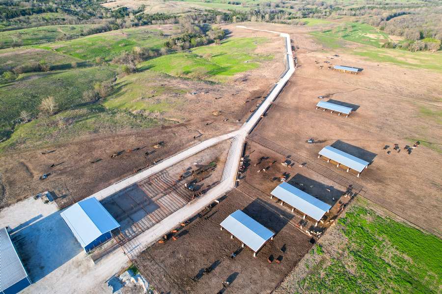 Crafted with maximum efficiency in mind, this backgrounding facility optimally has supported 1,250 head at a time with capacity of up to 1,500. But yet additional capacity expansion possibilities exist on the current acreage. There is plenty of pen space allowing the herd to be rotated for grazing while feeding out nutrient-dense feed specially mixed on-site with the Roto-mix feed truck and syrup spray system while being transferred into the feed bunks.