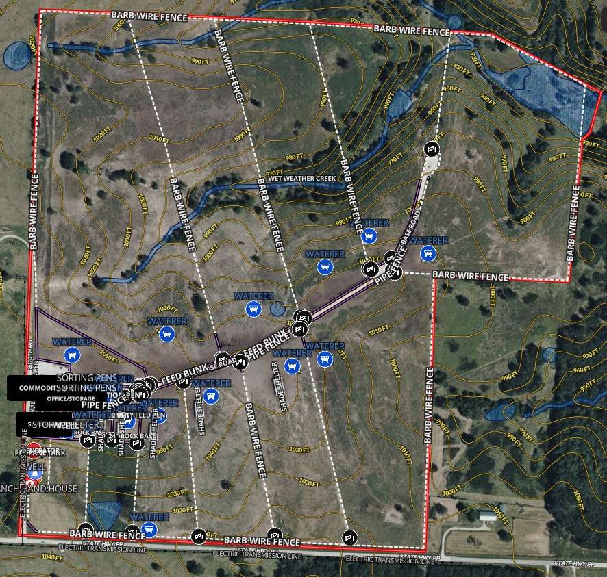 The infrastructure of this ranch is exceptionally constructed with a feed alley central to the property supporting 12 production pens and lined with over 3,000 feet of feed bunks. All pens are also lined with over 7,000 feet of custom welded pipe fence and gates along the alley with mostly 6-strand tight barbed wire cross-fencing. Each pen is supplied by a freeze-proof waterer, while pens 1-5 are supported with red iron cattle shade structures with concrete pillar bases to protect the herd from rubbing injury. Pens 1 & 2 are considered high density receiving traps with a 24” rock base to support large heard arrivals.
