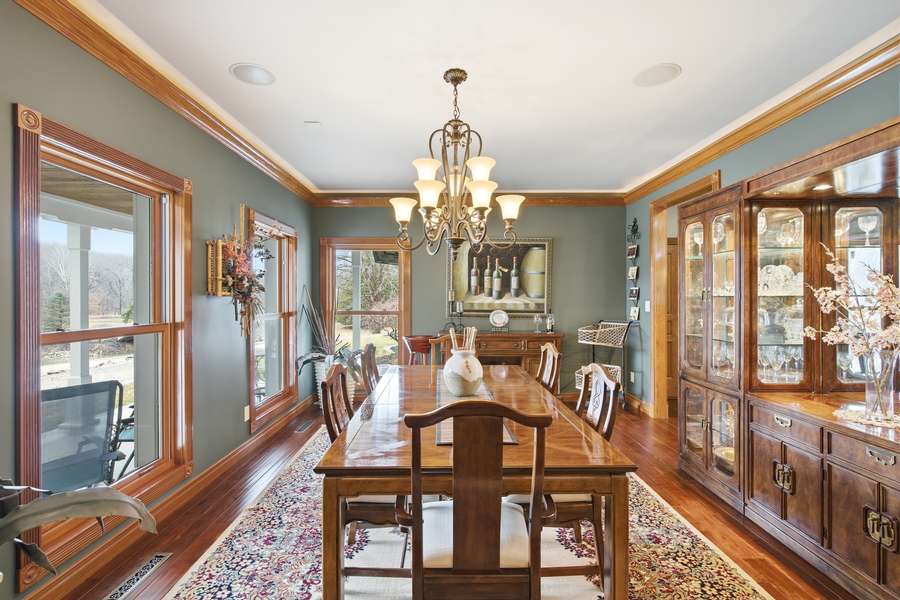 The 7,500± square foot custom home has been meticulously cared for and is filled with high-end features throughout. From the moment you step inside the granite entryway, you’ll appreciate the craftsmanship and attention to detail, including hand-scraped teak floors, a stunning curved staircase, and two fireplaces. The home offers four spacious bedrooms and five bathrooms, along with a quiet study, large office space, abundant storage, and an attached three-car garage.