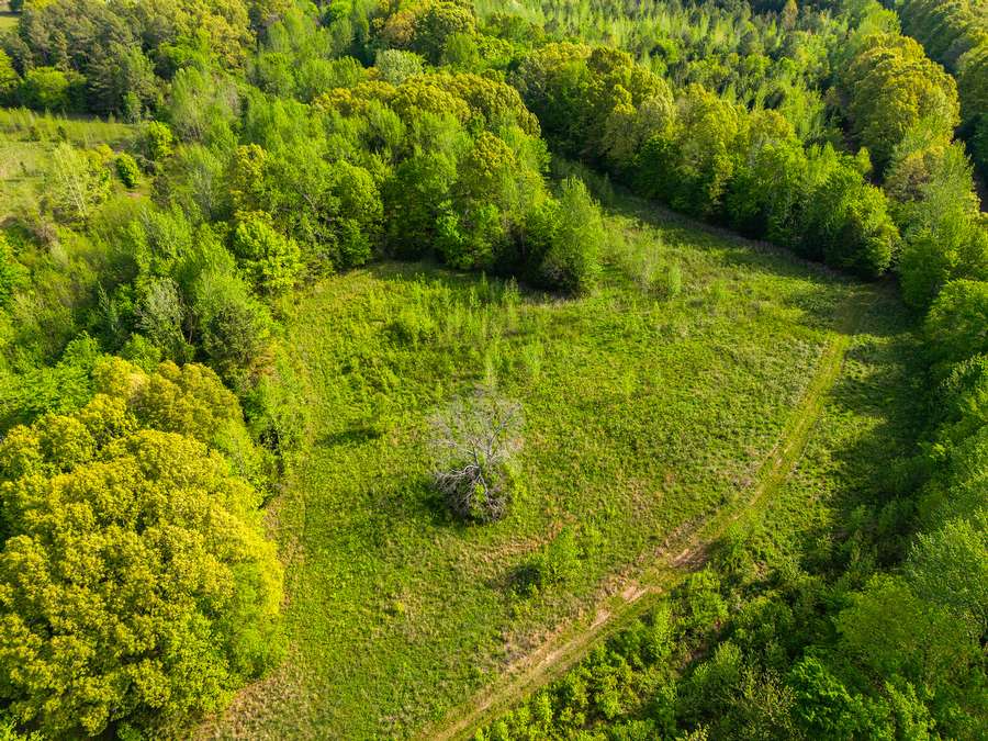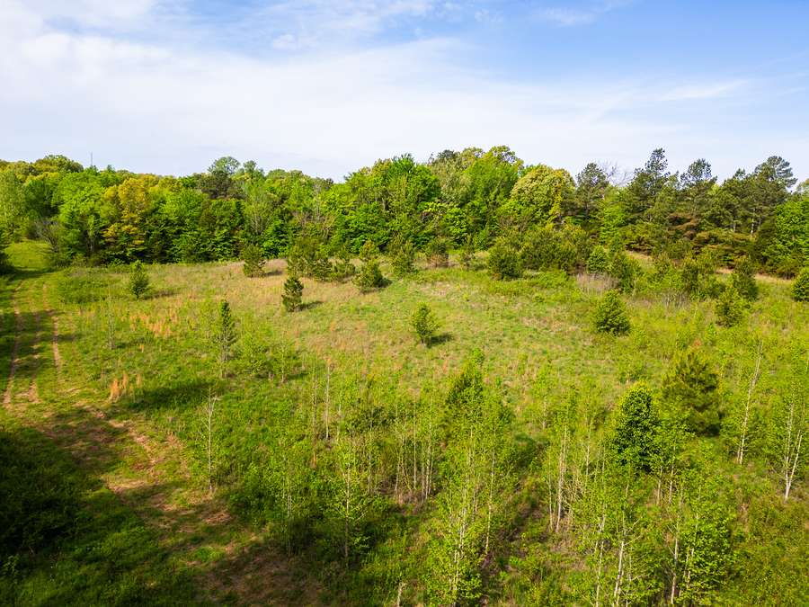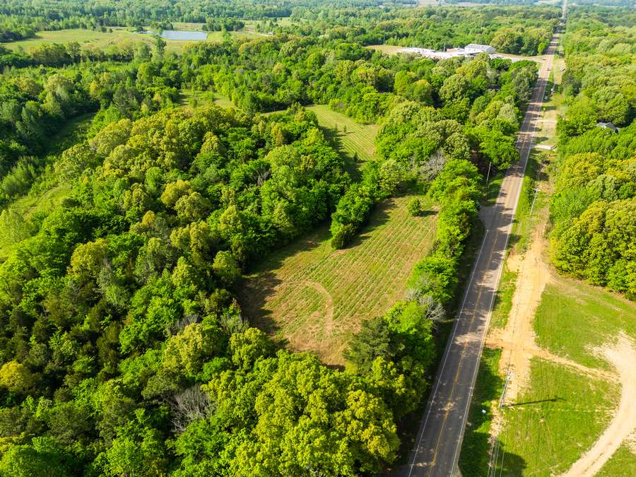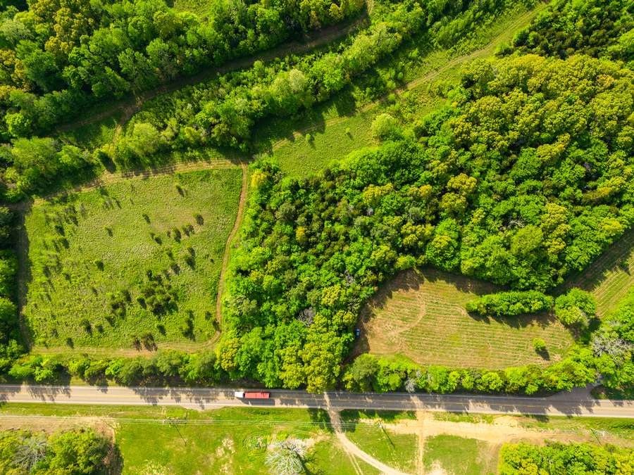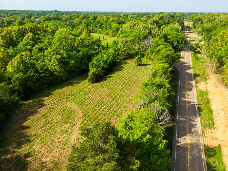 The property features a mix of timber and open fields, giving it both character and usability. The open ground sits just off the highway, providing a nice level of privacy without sacrificing accessibility. It would make a strong option for a homesite, small farm, or recreational tract.