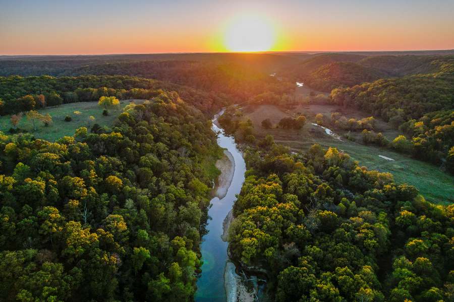 This ranch is loaded with springs that feed the river, and the watercress is plentiful. Fishing opportunities include a number of species, predominately smallmouth and trout which are natural to the habitat. Imagine a day of fishing on your very own riverfront with family and friends catching a native smallmouth bass or enjoying a horseback ride along the water or many trails throughout the property. Or maybe, just enjoying a fall evening campfire under some of the brightest night stars in the Ozarks!