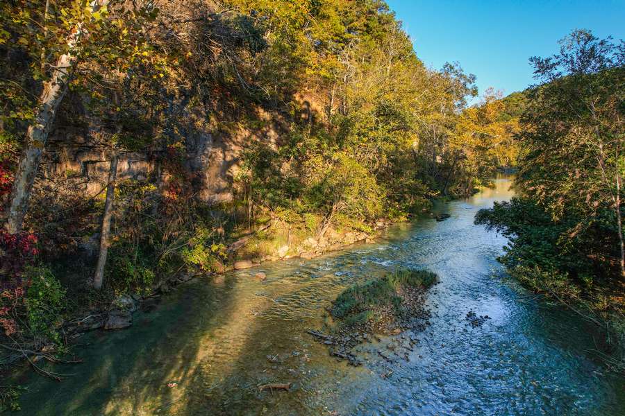 This ranch is loaded with springs that feed the river, and the watercress is plentiful. Fishing opportunities include a number of species, predominately smallmouth and trout which are natural to the habitat. Imagine a day of fishing on your very own riverfront with family and friends catching a native smallmouth bass or enjoying a horseback ride along the water or many trails throughout the property. Or maybe, just enjoying a fall evening campfire under some of the brightest night stars in the Ozarks!