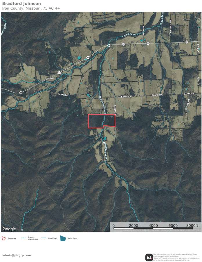 Discover 75.5+/- acres in Iron County, Missouri, offering the perfect blend of natural beauty, privacy, and recreation. Tucked along dead-end County Road 20A, this immaculately maintained property showcases a mix of mature hardwoods, scattered pine, and cedar, with a year-round creek meandering through the center.