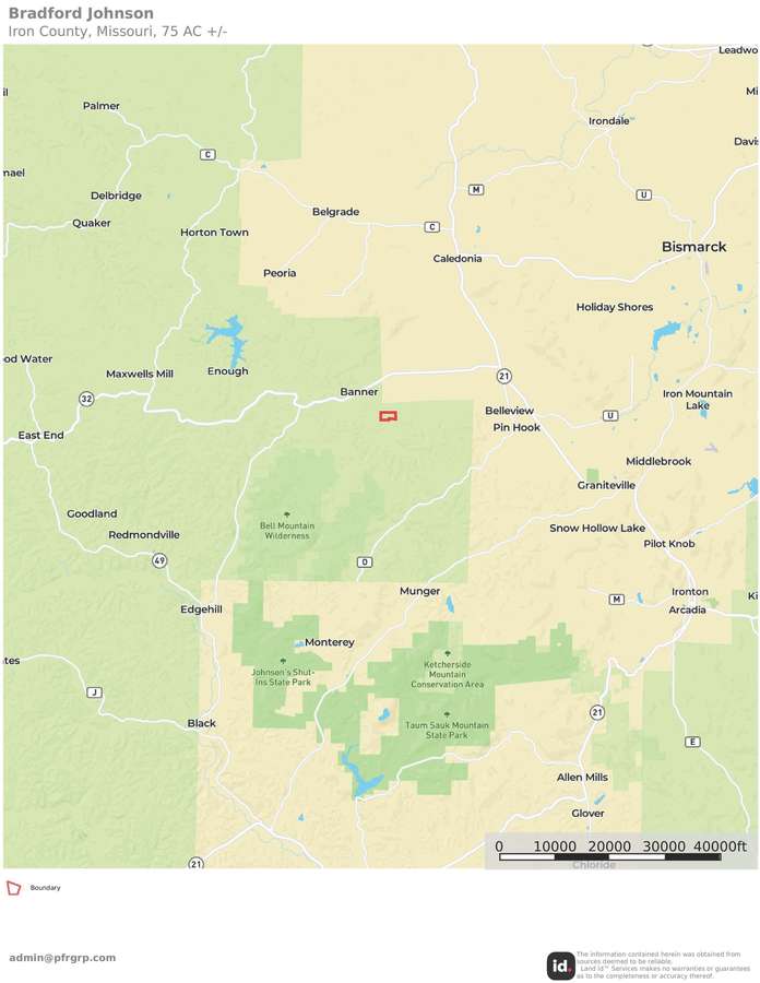 Despite its secluded setting, the property offers convenient access: ~24 miles west of Farmington, ~18 miles south of Potosi, and ~75 miles southeast of St. Louis. If you’ve been seeking a pristine Missouri acreage with water, natural beauty, and unmatched versatility, this Iron County gem is one you won’t want to miss. 2024 taxes total $39.75.