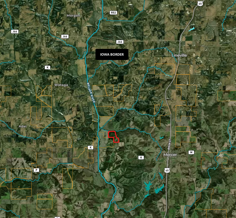 Just west of Mercer, MO, situated on the bluffs overlooking the Weldon River bottoms, sits this 100+/-acre hammer of a hunting and recreational farm—complete with a 3,000 sq. ft. custom-built home.