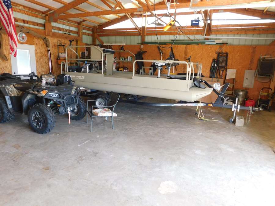 The back 40 acres is all hardwoods timber that for most of the year is seldom disturbed, except for springtime when we are after 1 of the many longbeards that roam the entire farm. Also, you can stay where you play, sitting a couple hundred yards off the main entrance is a 1900 Sq. Ft. house ½ shop-garage with concrete floor and 2 big bay doors & 2 walk-in doors. The living quarters has 2 bedrooms, a full bath with washer dryer, living room area with a nice kitchen, all appliances & most of the furniture will convey with the property.