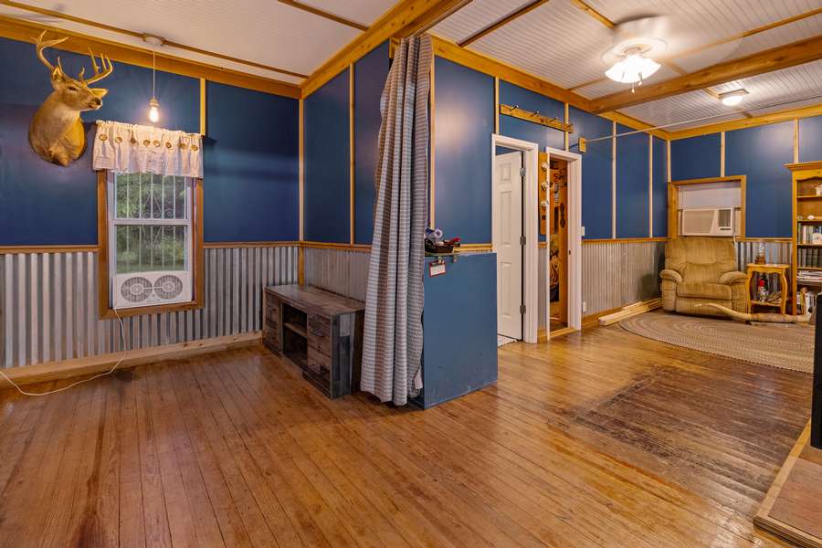The property also includes an insulated garage and a rustic fourth cabin awaiting your finishing touches. Outside, you can unwind in the above ground saltwater pool or soak in the hot tub on the screened in back porch. If it is the outdoors that you are seeking, this small tract has an abundance of deer and turkey.