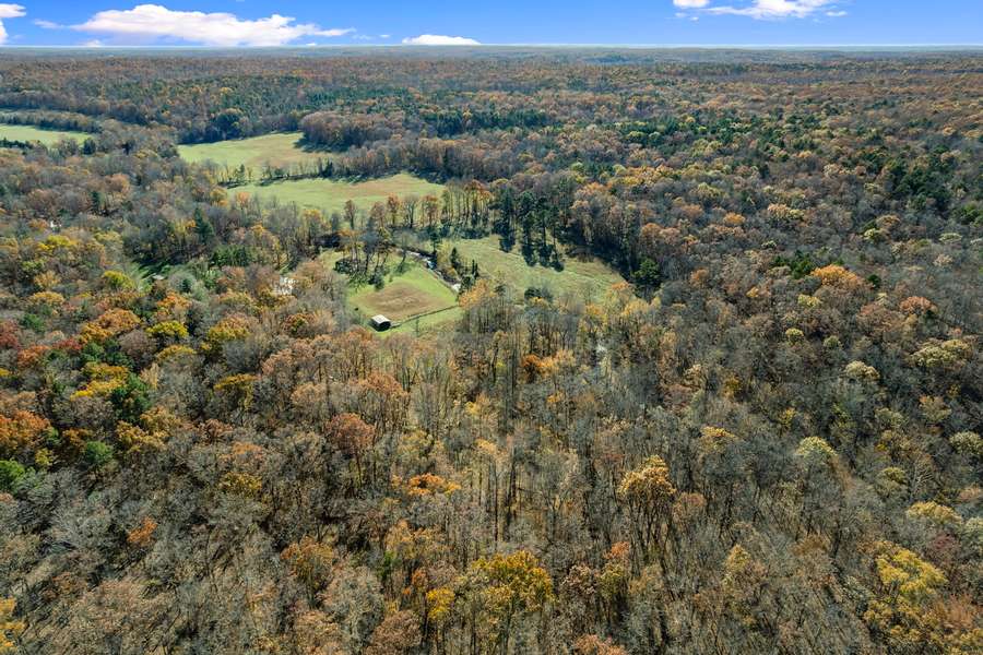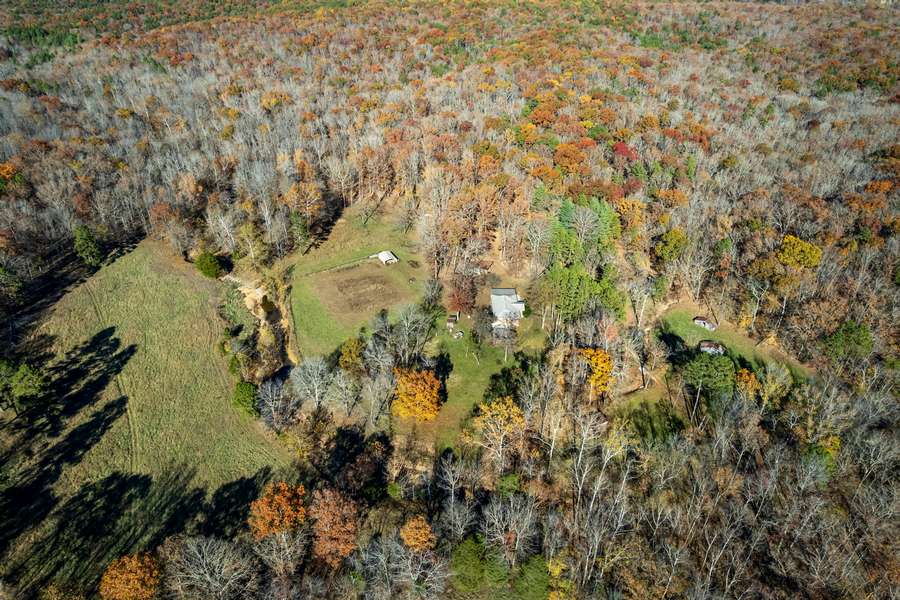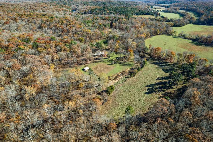 Tucked away in a peaceful, country setting sits 60+/- secluded acres offering the perfect blend of tranquility and privacy. The mostly wooded landscape features an abundance of marketable hardwood timber, presenting potential for future income or selective harvesting. A navigable trail system invites you to enjoy the outdoors and provides easy access to those favorite hunting spots or acts as your guide during those peaceful nature walks. The open pasture adds versatility for livestock or gardening and offers a wet-weather creek fed by natural springs, adding appeal and character to the landscape. Utilize the various outbuildings onsite to store your livestock supplies, gardening tools or farm equipment.