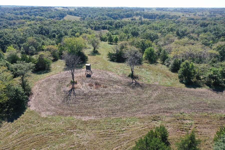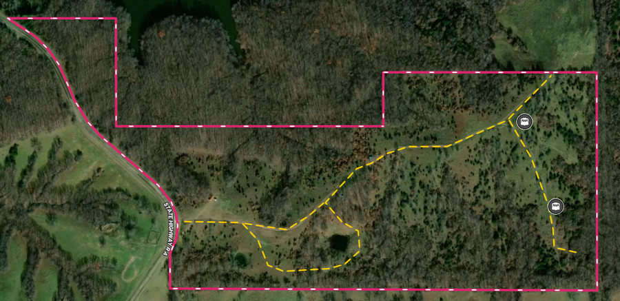 The deer traffic on this farm is just spectacular & there are abundant long beards as well. Currently there are two box blinds, a ground blind, and some ladder stands. Food plots are planted as well in four locations. There is electric on the property and water at the road. The entrance to this property is off of blacktop RA where there is a nice gravel pad to put a camper or cabin.